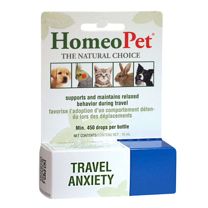 - HomeoPet Travel Anxiety relief pet medicine can be used on dogs and cats of all ages and may also be used for birds, rabbits, guinea pigs, and other animals.