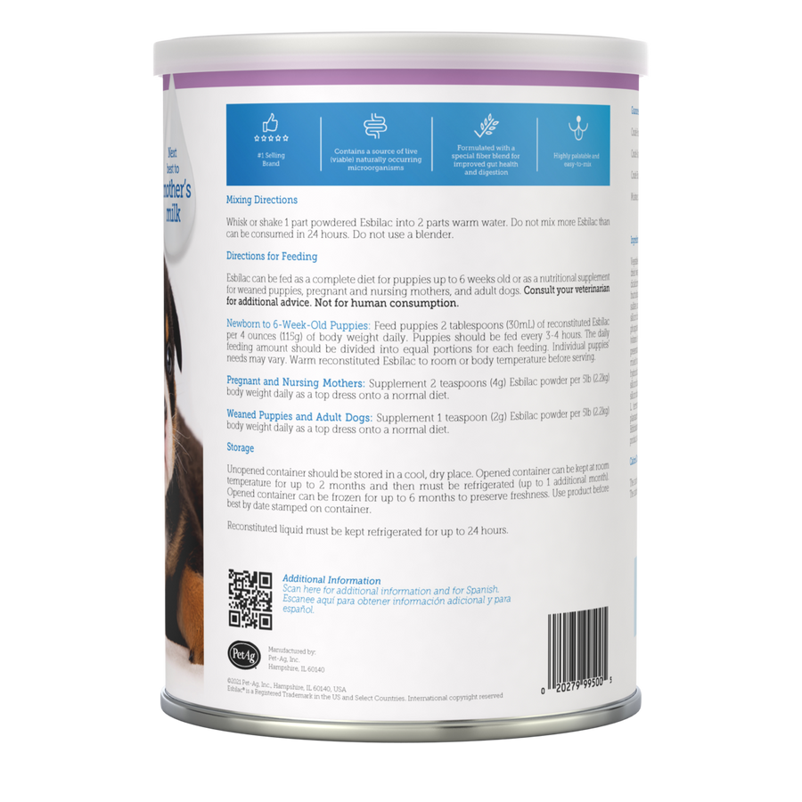When mom can’t nourish them, Esbilac® can. Scientifically the next best to mother’s milk, Esbilac® provides all the nutritional elements necessary for puppies needing supplemental feeding or adult dogs requiring a source of highly digestible nutrients.