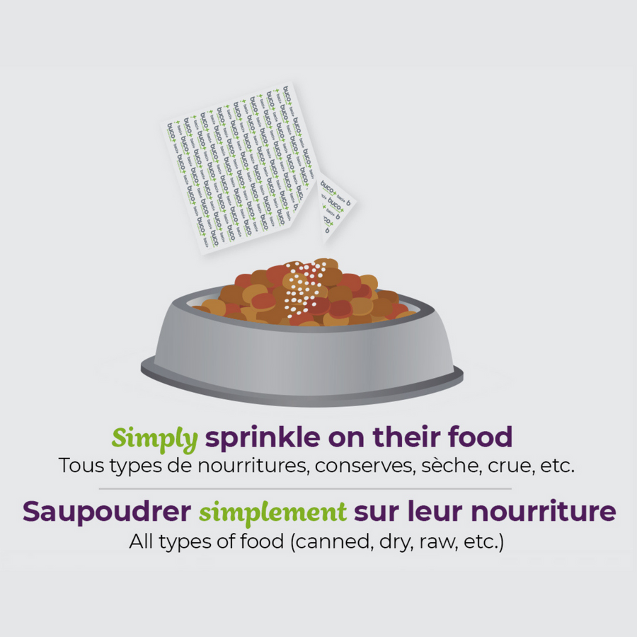 Simply sprinkle on your pet’s food for fresh breath, healthy teeth and gums without brushing.