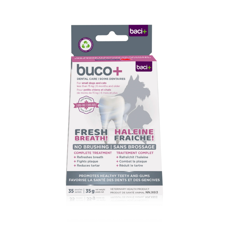 If you forget to brush your pet's teeth every day or if your pet does not agree to have their teeth brushed, buco+ is the solution to keep your mind at ease.