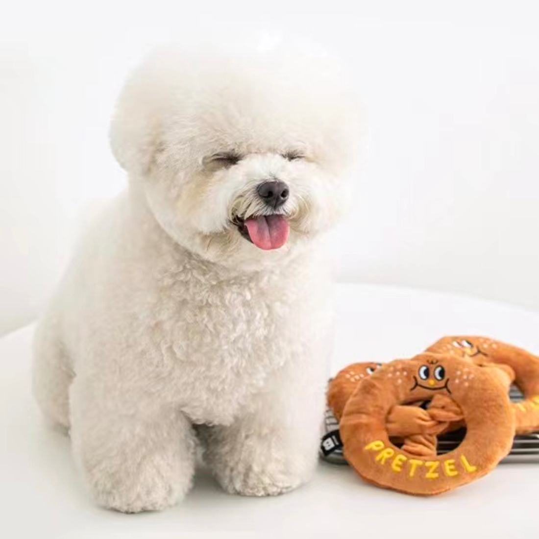 Introducing the Pretzel Squeaky Toy - sure to provide your pet endless hours of squeak-filled fun! Its unique shape and flexible material make it the perfect companion for chasing, chewing, and snuggling. Get ready for your pup to give it two paws up!