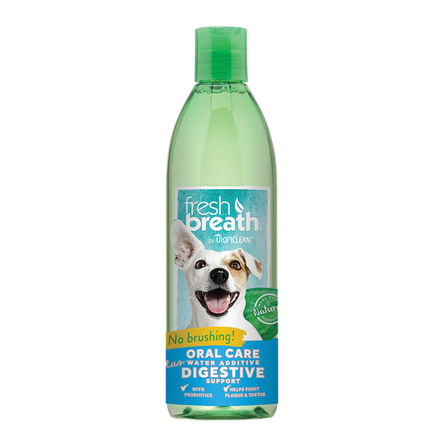 Oral care is about more than making your pets smiles sparkle it's an important component of their overall health. In fact, 80% of dogs and 70% of cats begin to show signs of oral disease by age 3. With Fresh Breath Oral Care Water Additive Plus Digestive Support, dogs and cats can benefit from daily plaque and tartar defense, simply by drinking from their water bowl. Plus, probiotics support healthy digestion. Easy to use for both you and your pet no brushing required.
