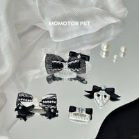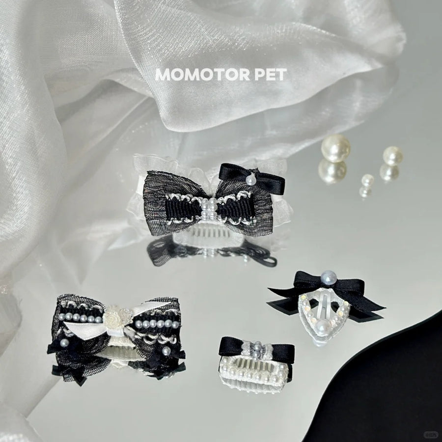 This 4-piece collection features delicate black lace and shimmering pearl accents, perfectly balancing timeless sophistication with a cute, playful twist. Whether your furry friend is channeling sweet or cool vibes, these clips add a chic finishing touch to any look.