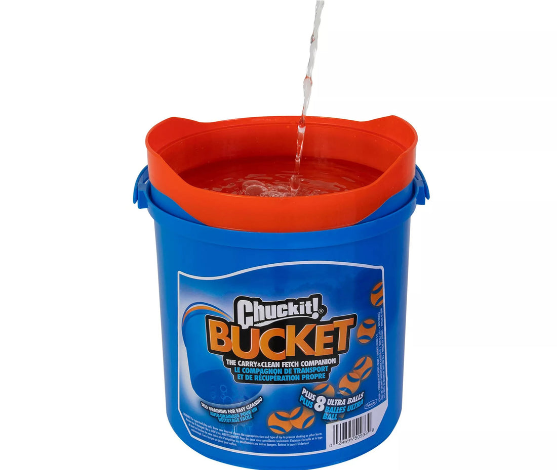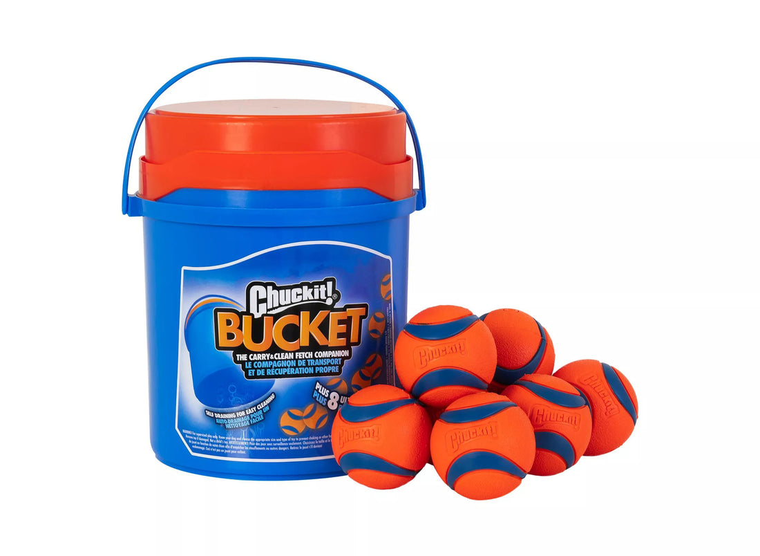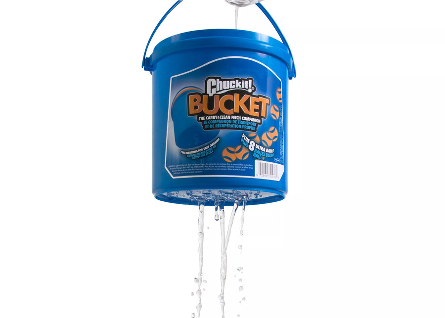 Enjoy endless games of fetch with the NEW Chuck It! Bucket! Made for fetch-loving canines, this bucket comes with eight of Chuck It!'s #1 selling Ultra Balls - size medium - and features specifically designed drainage holes that let water drain out.