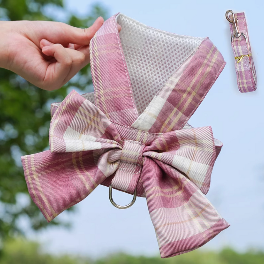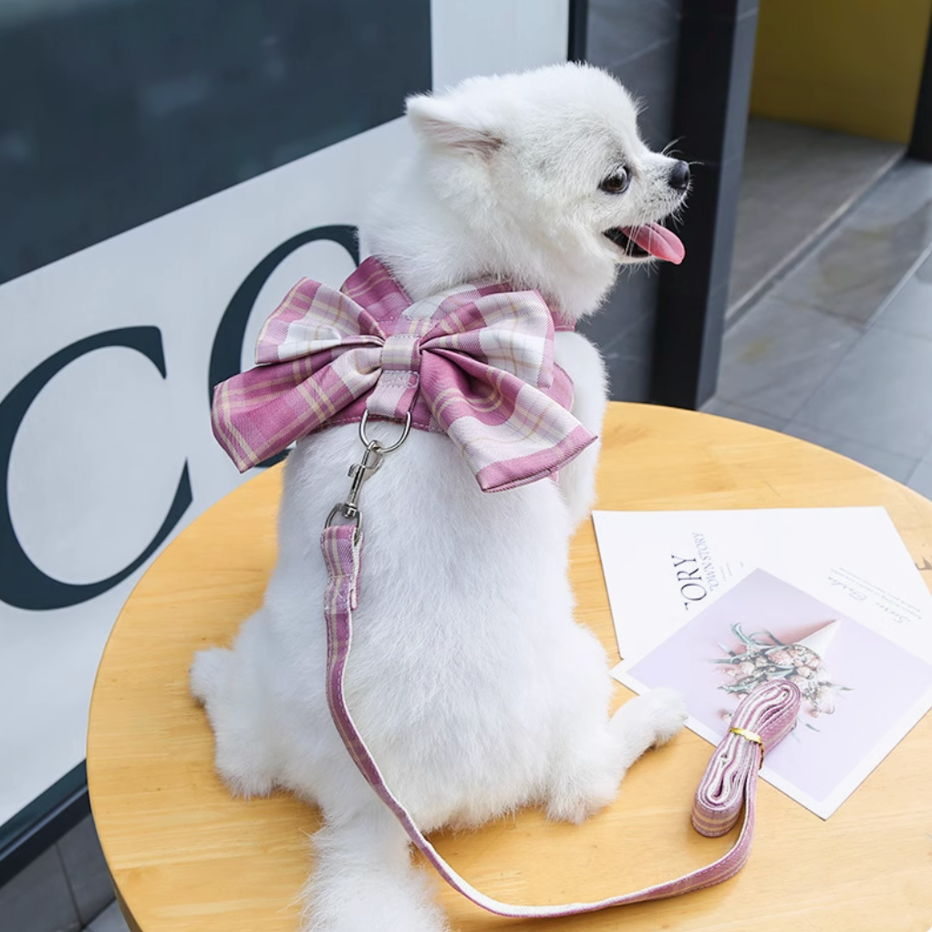 This vest-style harness features a sweet bowknot on the back, adding an adorable touch while ensuring comfort and safety.