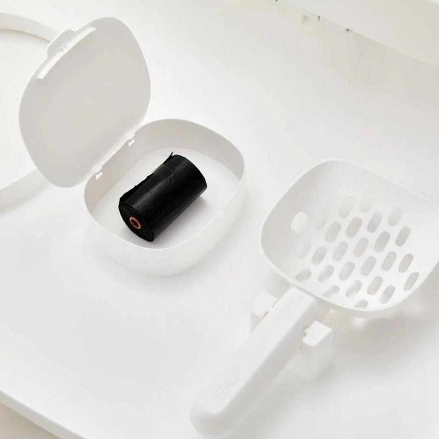 Add a contemporary style to your home with this uniquely designed litter box. The open to clean feature ensures you and your cat stay as hygienic as possible. A removable base tray with the included scooper allows for easy cleanup.