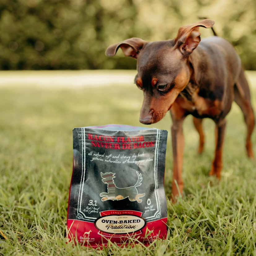 Oven-Baked Tradition All Natural Soft & Chewy Dog Treats - Bacon Flavor treats are crafted with all-natural ingredients such as chicken, pumpkin, bacon flavoring and more, then gently mixed with milled whole grains with additional glucosamine and chondroitin then slowly oven-baked. For a soft and chewy treat that is irresistible in flavor and aids with joint and hip function.