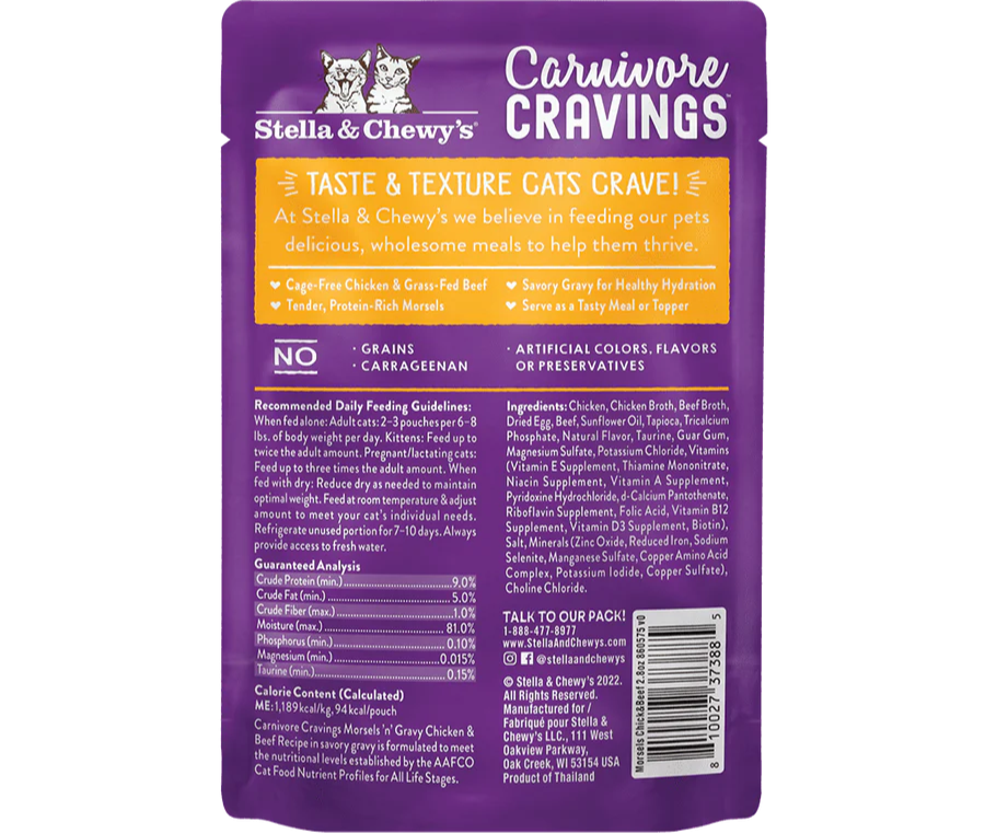 【Stella & Chewy's】Carnivore Cravings Savory Shreds - Chicken & Grass-Fed Beef - 2.8oz