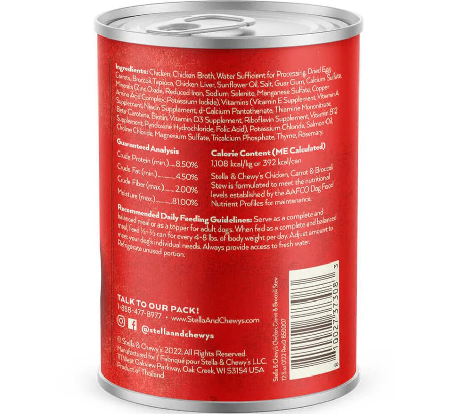 【Stella & Chewy's】Dog Gourmet Stew - Chicken, Carrot & Broccoli - 12.5oz Cans