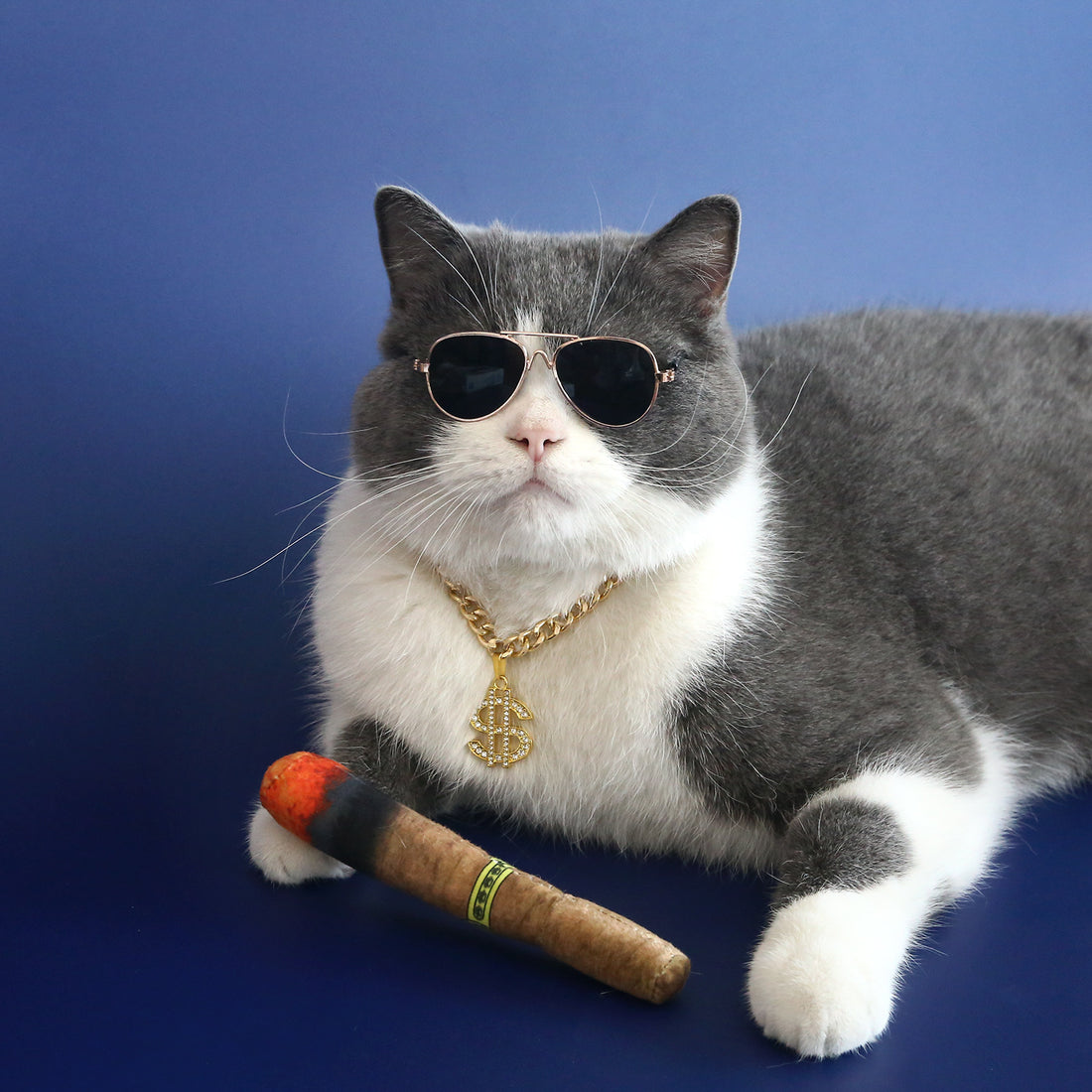 Pet Bling Set: Dollar Pendant, Gold Necklace, Sunglasses, Cigar, Catnip Toys & Hip-Hop Dog & Cat Outfit