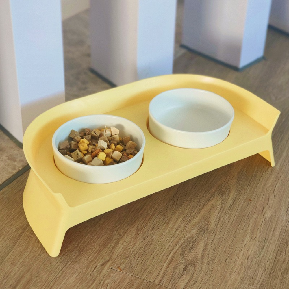 【外“香”里“蕉”】宠物双碗 - 带两个陶瓷碗