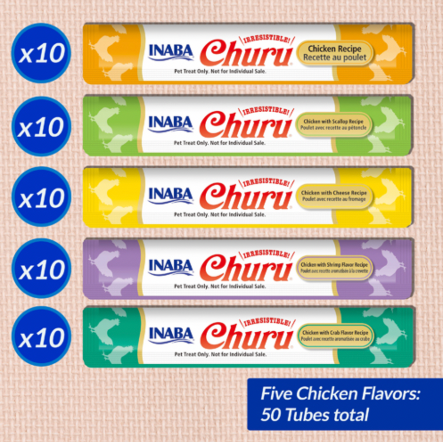 这些可舔的猫食由 100% 纯天然野生金枪鱼或农场饲养的鸡肉制成! Churu® Purées 有九种美味的品种可供选择,富含猫科动物健康所需的水分。 只需撕开一个管子,轻轻挤压一下,就可以用手喂食这些不含谷物、不含防腐剂的零食。 您也可以将它们倒入碗中或用作湿或干食物上的美味装饰。