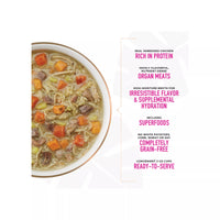Whole shredded chicken, flavorful organ meat and nutritious vegetables are hand-packed in a succulent broth.