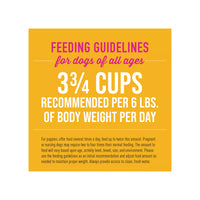 For adult dogs, feed approximately (3) 3oz cups per 6 Ibs. of body weight. For puppies, offer food several times a day, feed up to twice this amount. Pregnant or nursing dogs may require two to four times their normal feeding