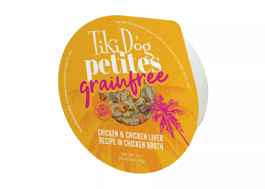 【Tiki Dog】Petites - Chicken & Chicken Liver Recipe in Chicken Broth - 3oz Cup & Pack of 4
